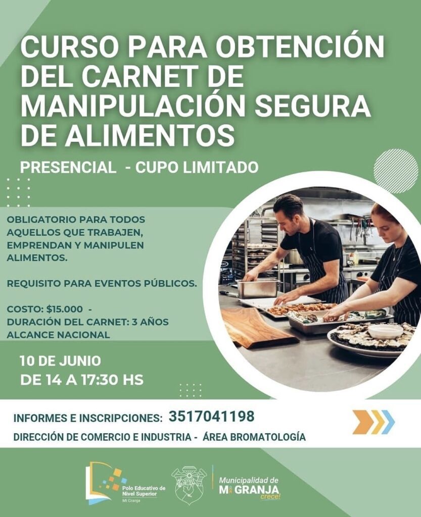 La Municipalidad de Mi Granja informa la realización de un nuevo Curso Presencial para la Obtención del Carnet de Manipulación Segura de Alimentos, una capacitación obligatoria para todas las personas que trabajan o emprenden en el rubro alimenticio, y requisito indispensable para participar en eventos públicos.